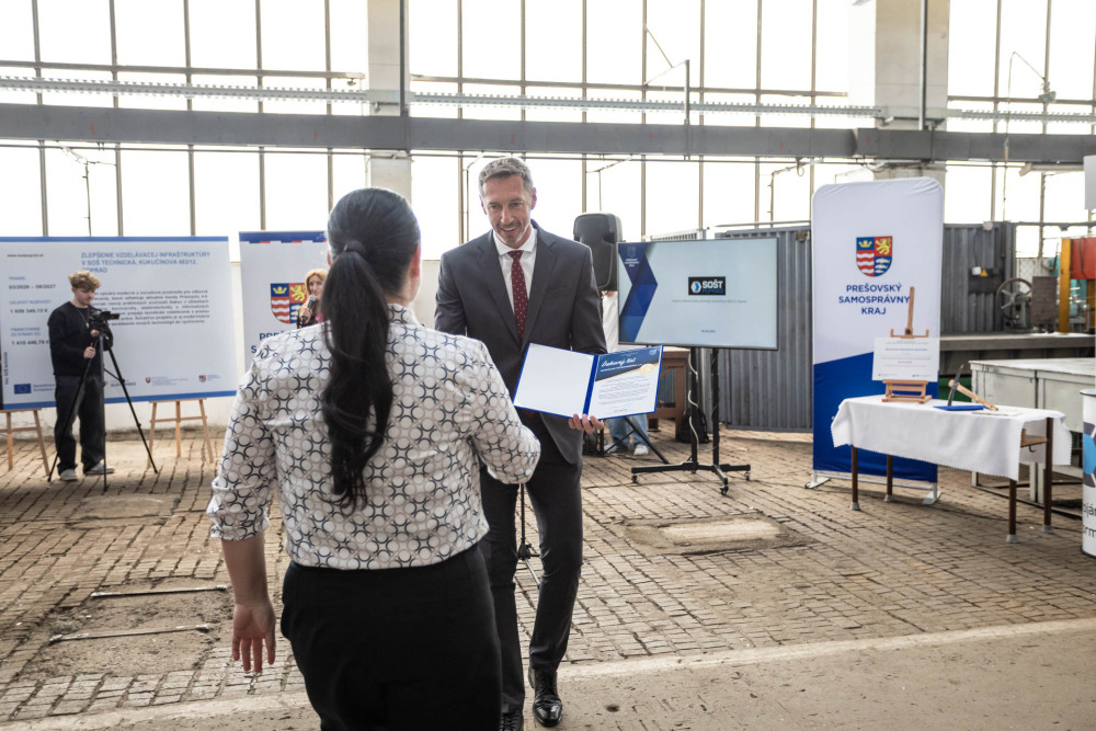 „Eurofondy majúpomáhať ľuďom na Slovensku. V tomto prípade pomôžumladým ľuďom pri ich kvalitnej odbornej príprave a vzdelávaní. Investujeme nielen do zatraktívnenia školy – jej priestorov, auly, učební, dielní a do nových strojov a zariadení, do techniky či softvérov. Predovšetkým ale investujeme do každého jedného žiaka, ktorý si túto školu vybral pre svoje stredoškolské vzdelávanie. Verím, že aj vďaka tomu budú naši absolventi, a to aj tejto špičkovej školy, nachádzať uplatnenie doma, v regióne či na Slovensku, a nebudú odchádzať za prácou do zahraničia,“ uviedol predseda PSK Milan Majerský pri oficiálnom odovzdaní staveniska školy zhotoviteľovi.